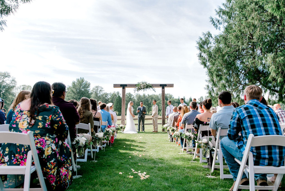 They chose Machias Meadows for their venue. This venue has so much to offer with an outdoor spot for ceremonies, a modern farmhouse feel building for dinner, and a barn for dancing. I love that this venue has these options for any kind of weather.